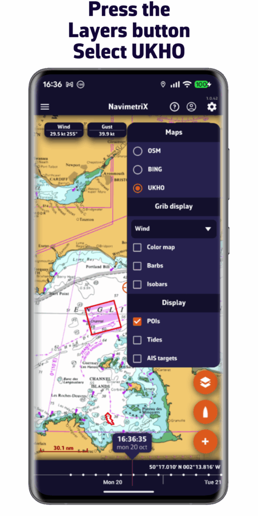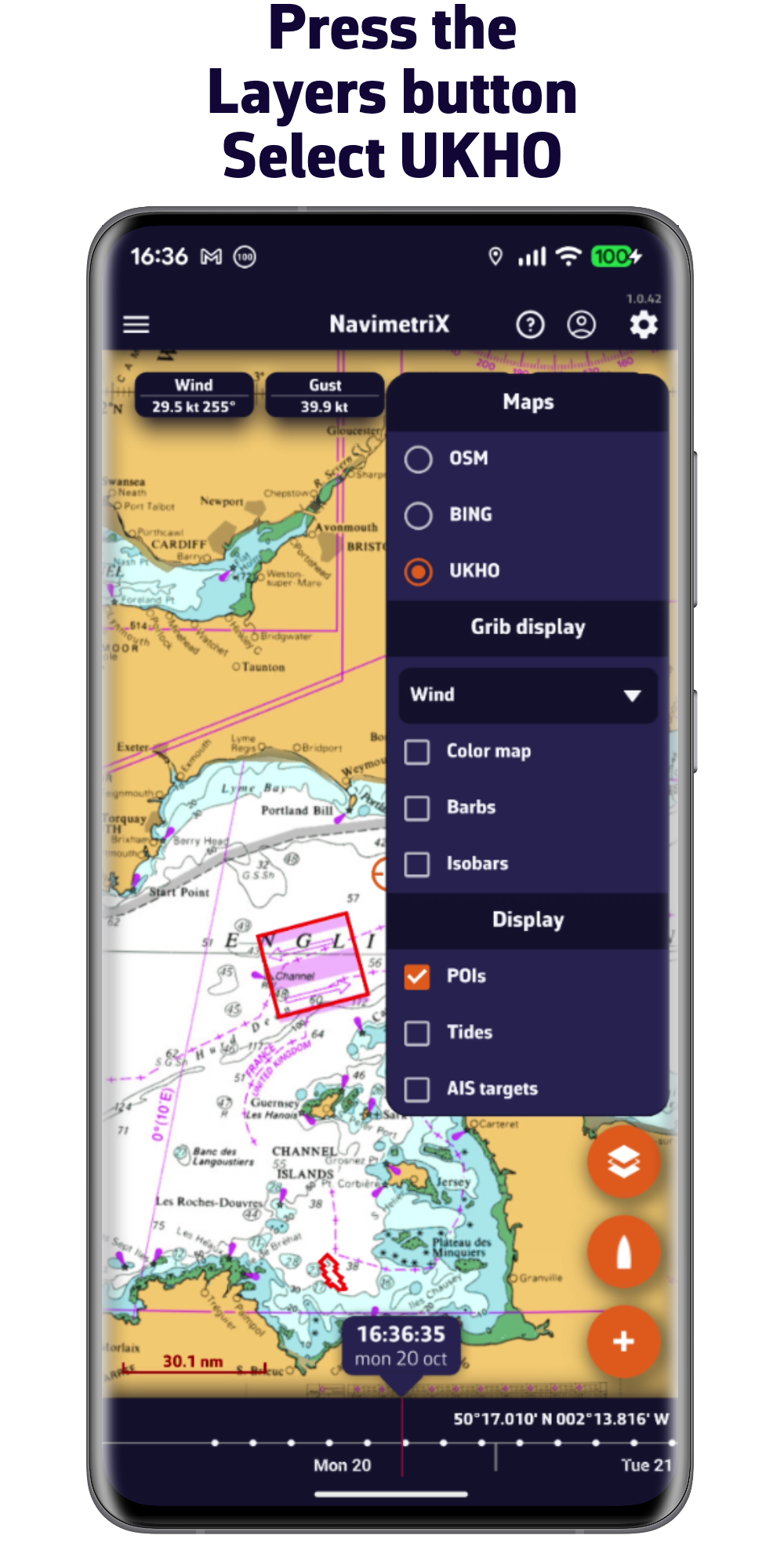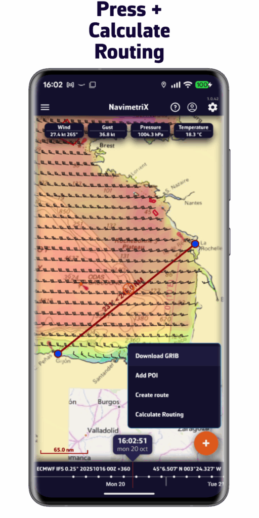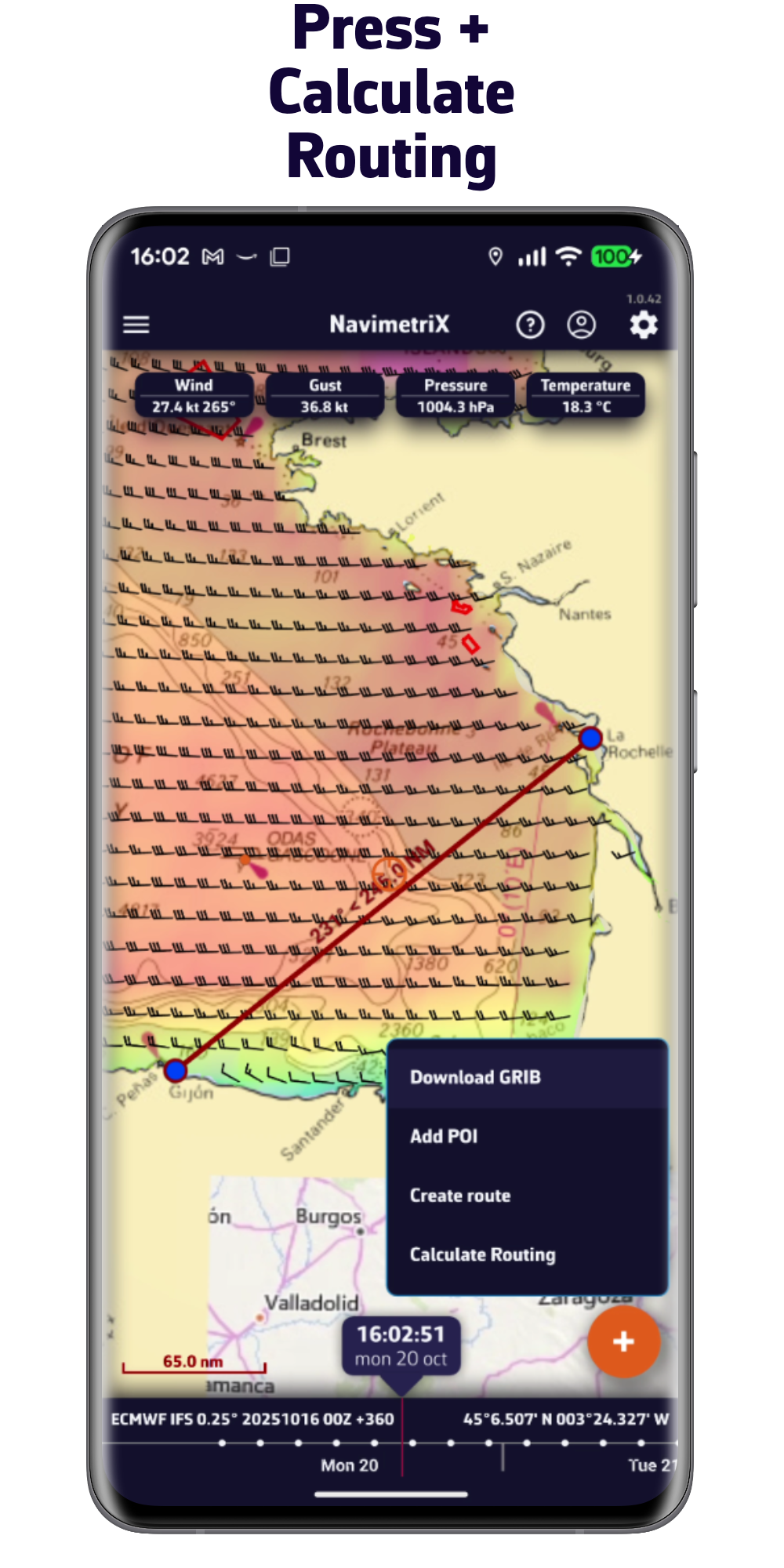 Wherever you are - on your boat, at home, on the go, or at the office - prepare your navigation. Once on board, launch the app and set sail!