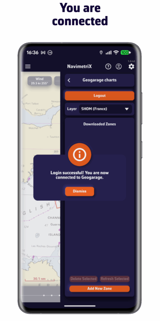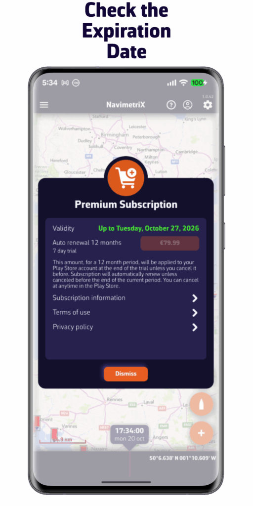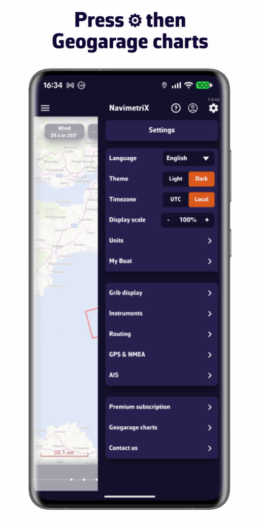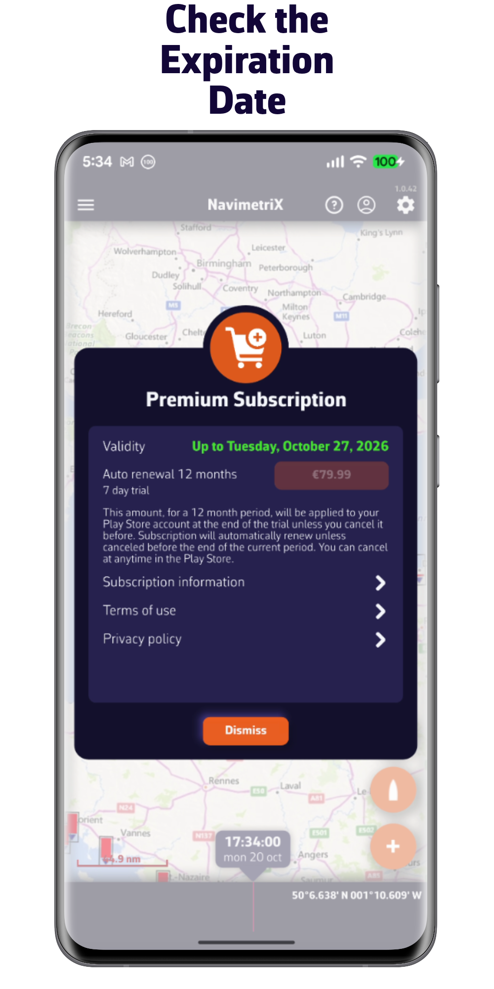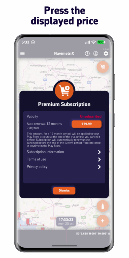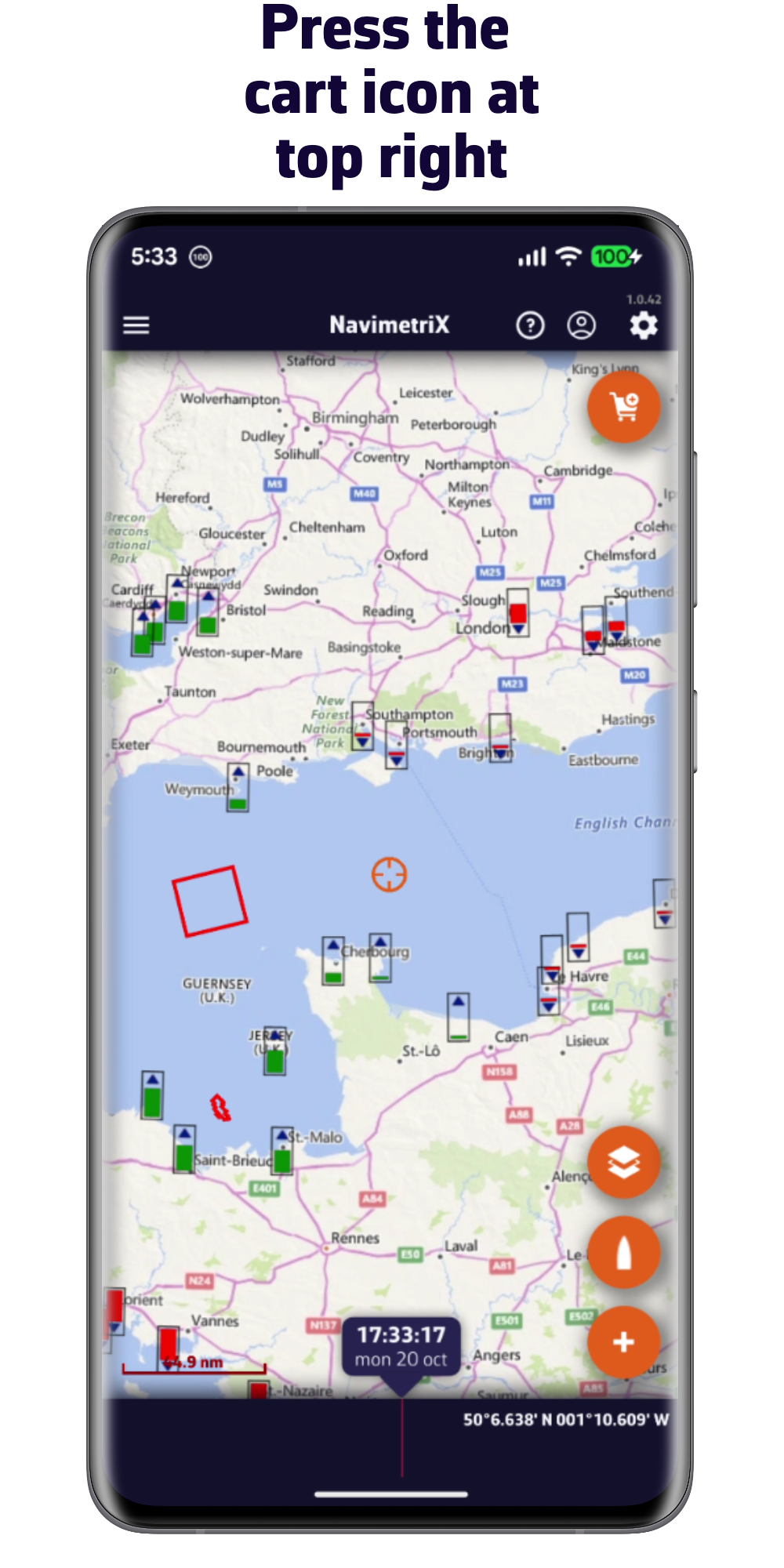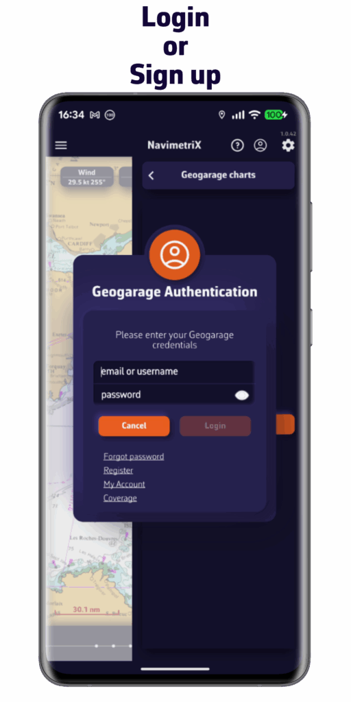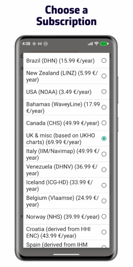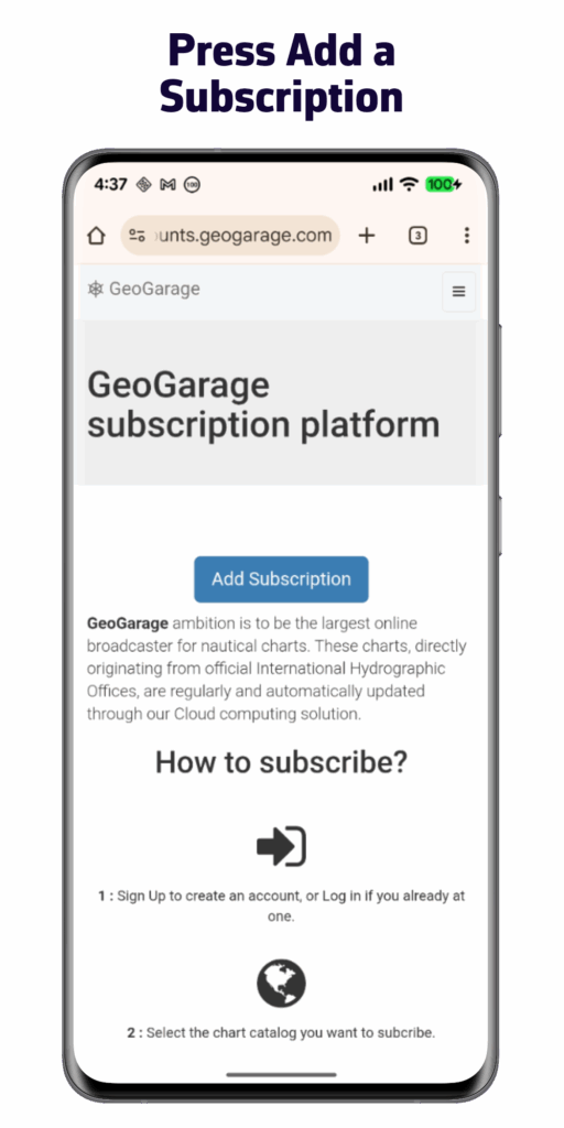 Please note that the subscription does not include nautical charts. To navigate with nautical charts, you must have a subscription to the Geogarage platform.