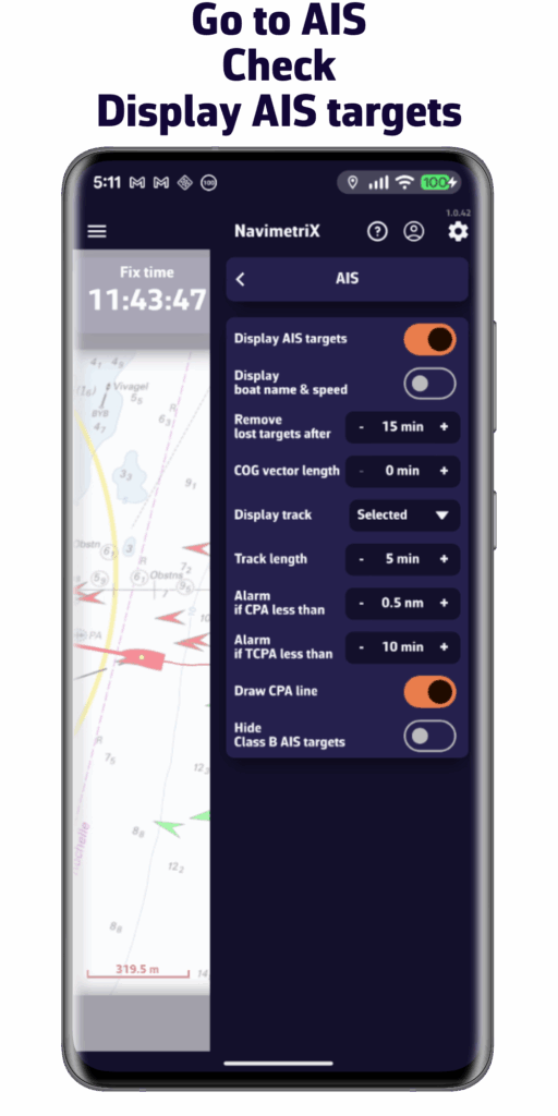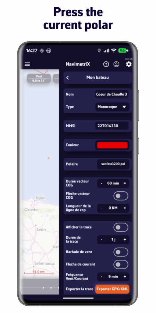 - My boat :all parameters concerning your vessel, polar, name, type, MMSI, etc.