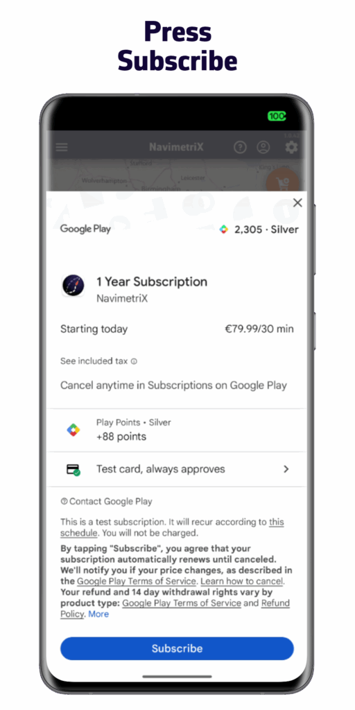 You can subscribe via the Apple App Store or Google Play Store directly from the app by pressing the “Shopping Cart” button.