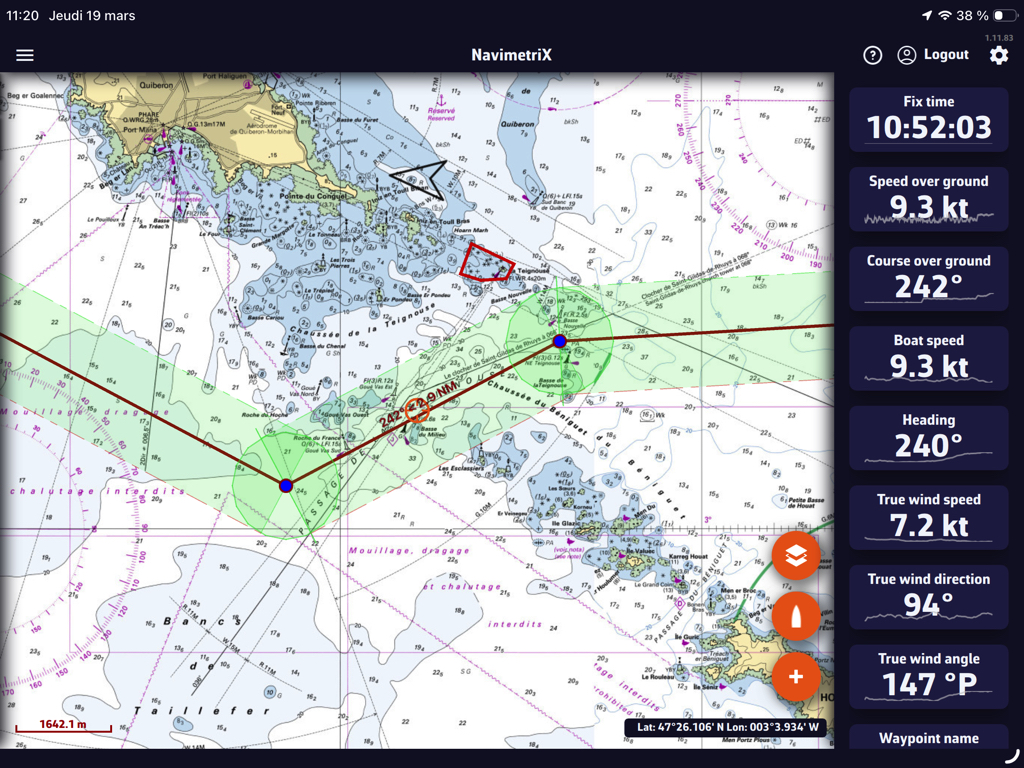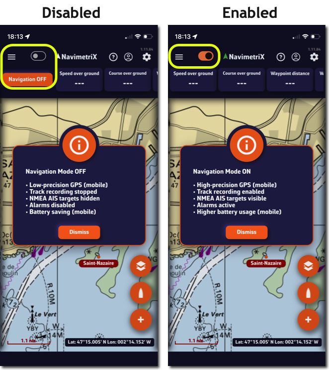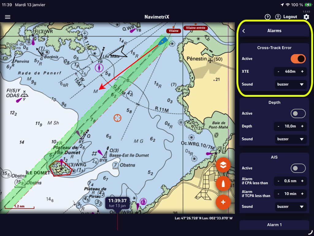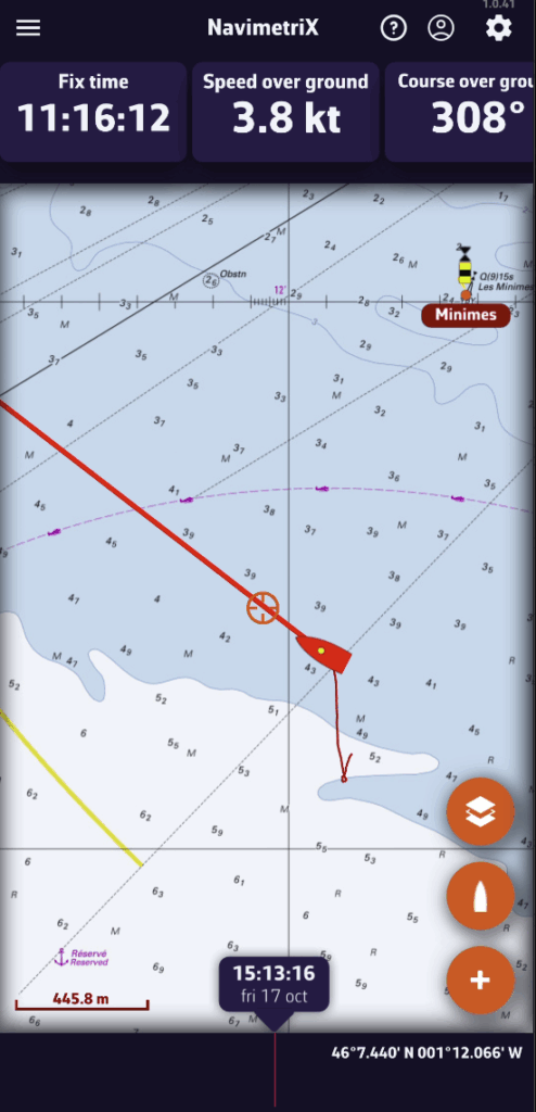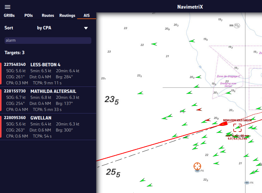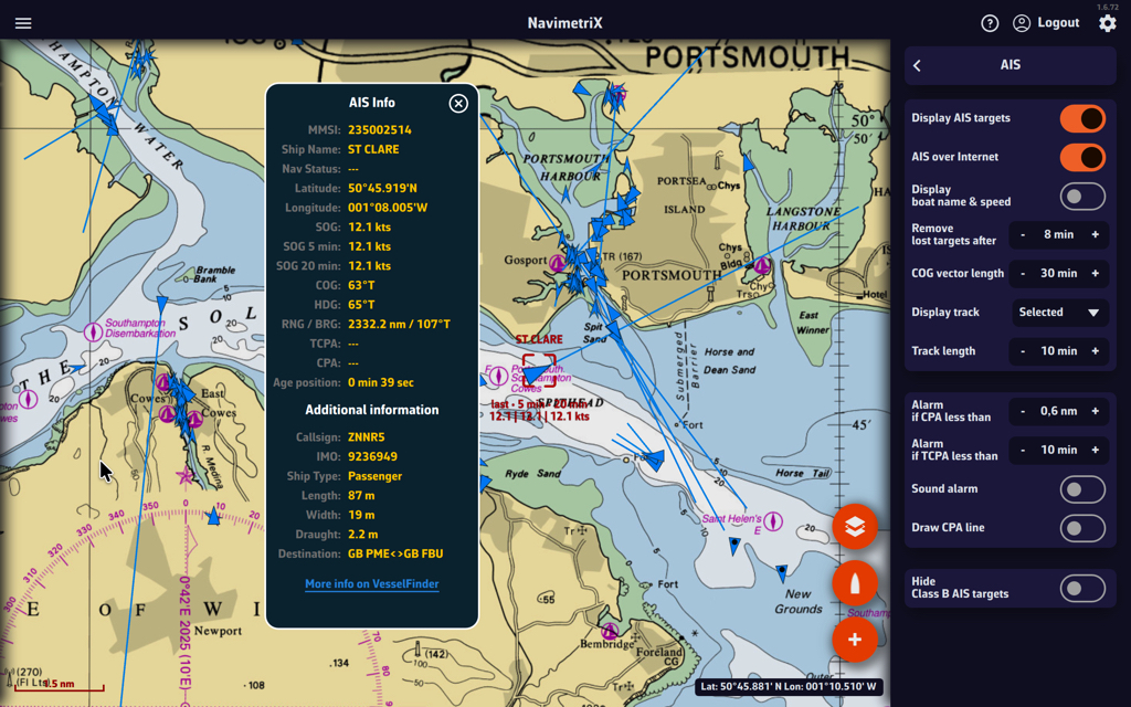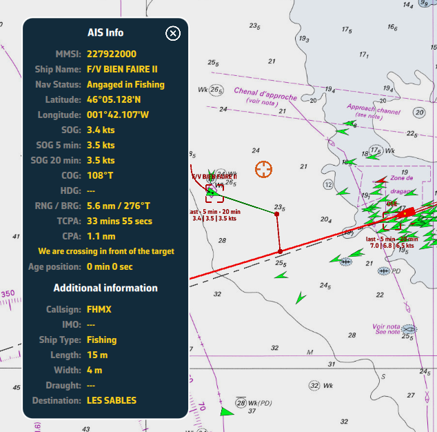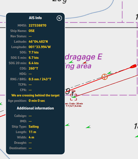 Si se pierde la señal AIS, NavimetriX cambia automáticamente al modo de estimación de deriva después de 60 segundos.