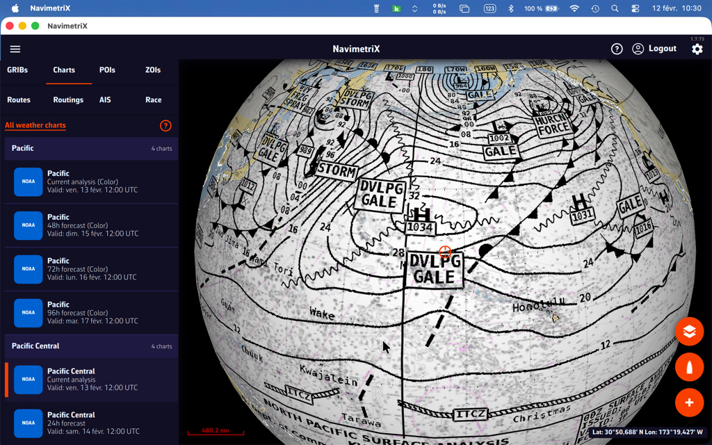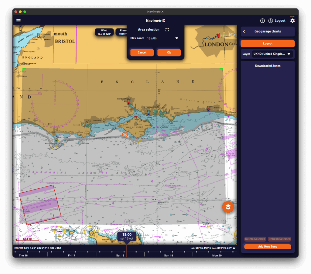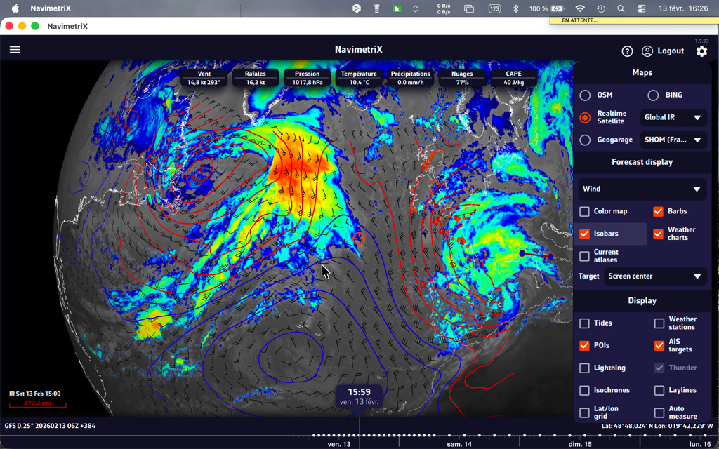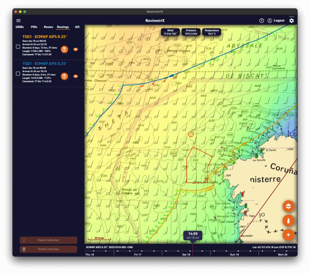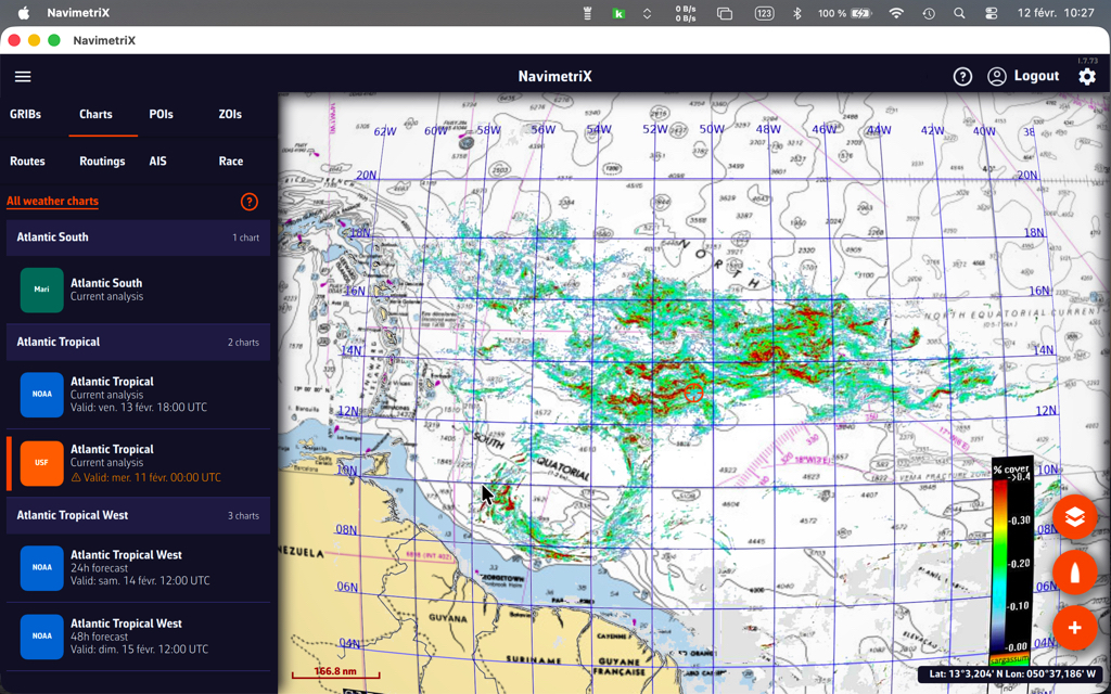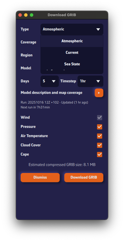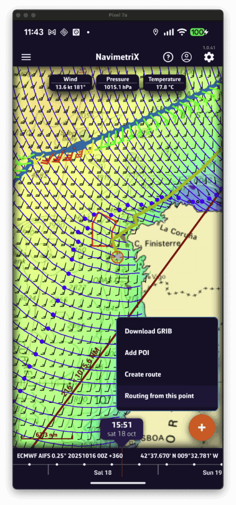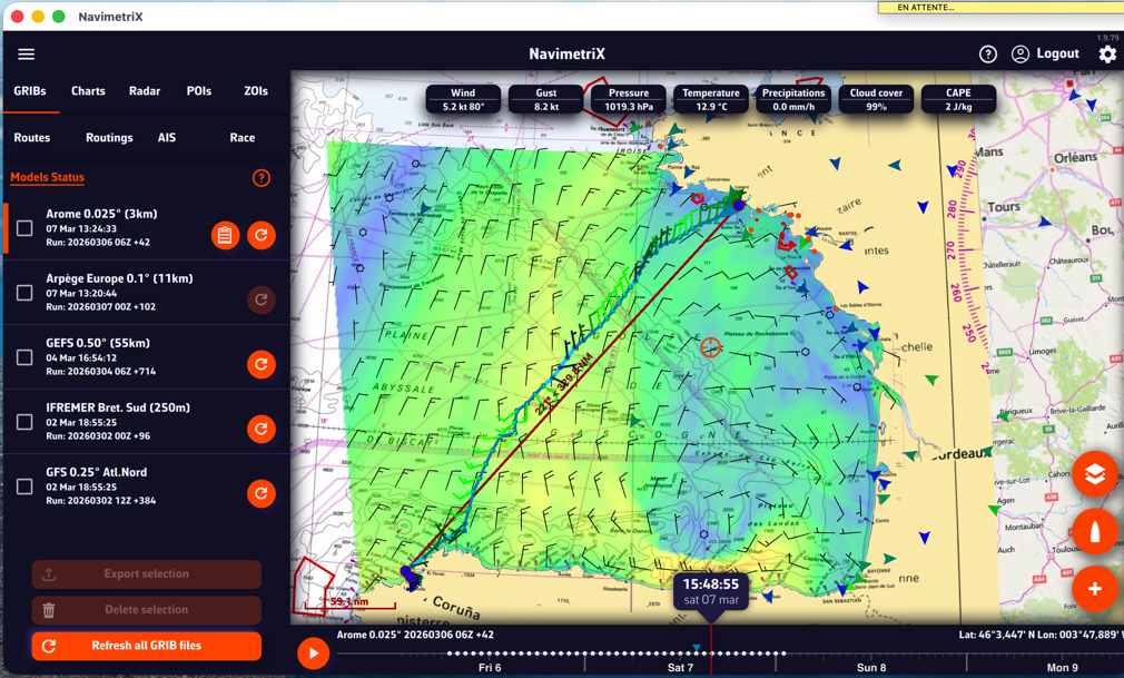 - Cargue un archivo GRIB para su zona de navegación: los datos de viento y corriente GRIB mejoran significativamente la precisión del cálculo de deriva