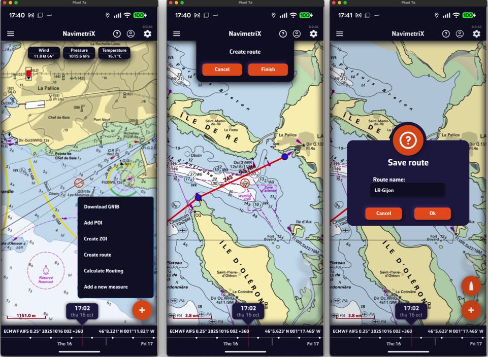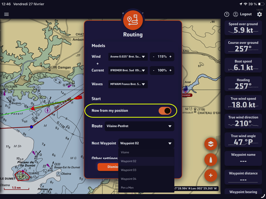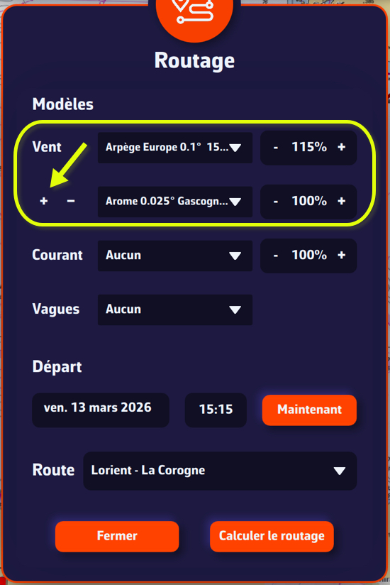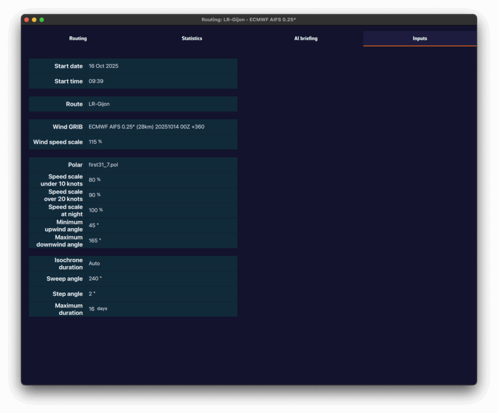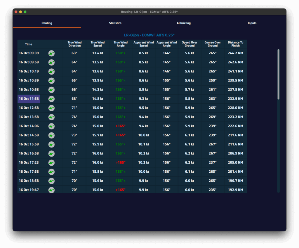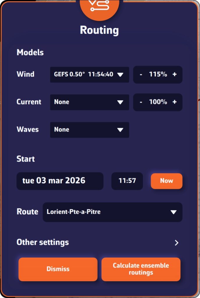 - Cree una ruta que corresponda al recorrido de la regata (o importe la ruta oficial)