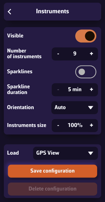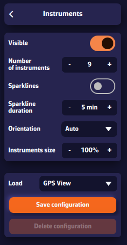 - La configuración de instrumentos (que debe adaptarse al tamaño de la pantalla)