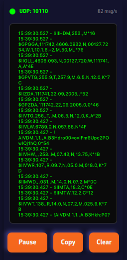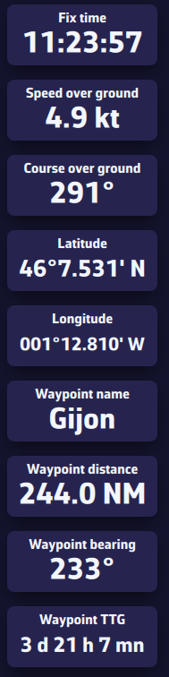 PermalinkSe admiten los datos NMEA transmitidos por una pasarela NMEA, un multiplexor o cualquier otro instrumento que emita en un puerto serie a través de una conexión USB.