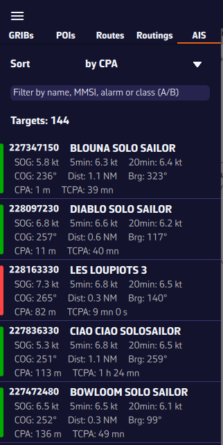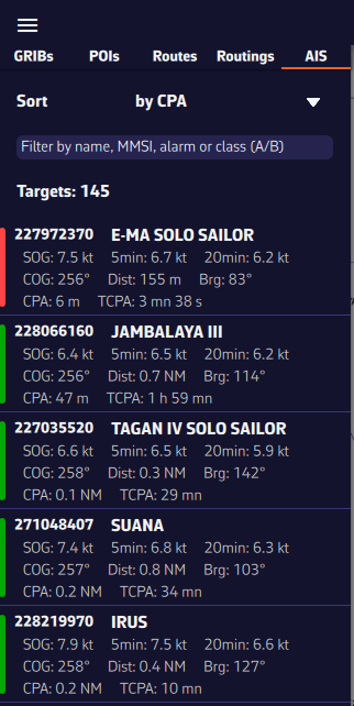 El Race Tracking admite el formato Adrena, que es el estándar utilizado por la mayoría de los organizadores de regatas de altura: