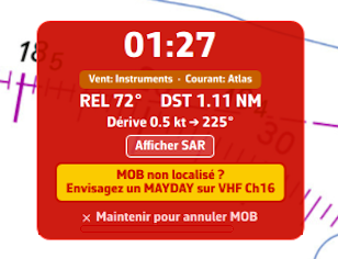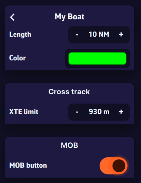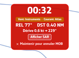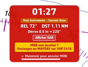 - El botón MOB solo aparece en modo Navegación con una posición GPS activa