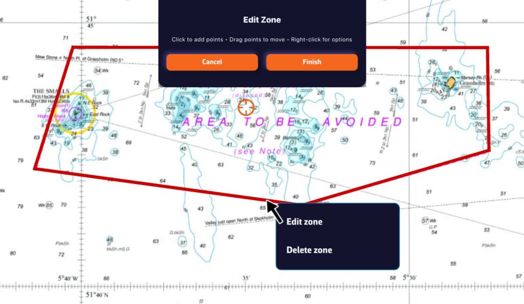 - Centra el mapa en la posición del barco.