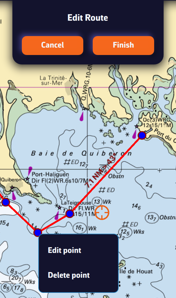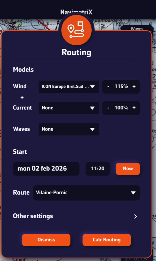 - En los ajustes de la regata, seleccione el nombre de la ruta