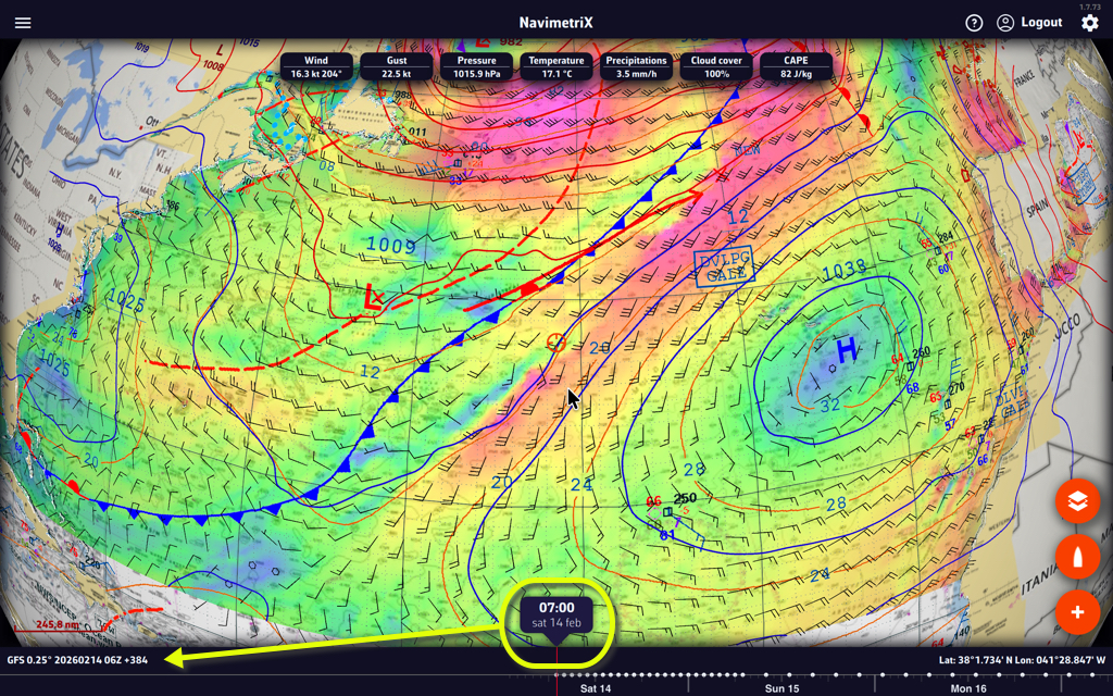 - Datos del archivo GRIB en la diana a la hora de la barra de tiempo