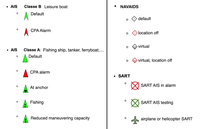 - Verde: baliza AIS MOB detectada y rastreada