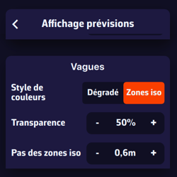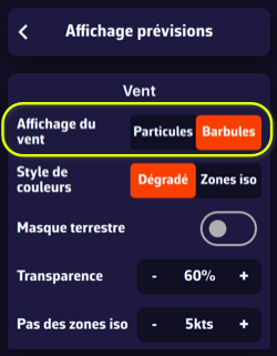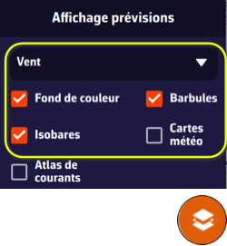 - Section Affichage prévisions - Permet de choisir les paramètres météo à afficher, selon le modèle météo sélectionné :