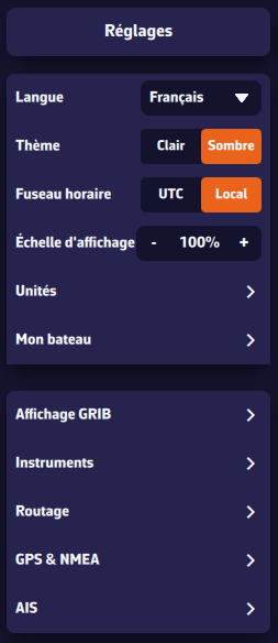 Menu Réglages > AIS