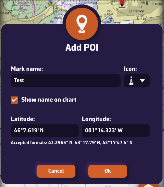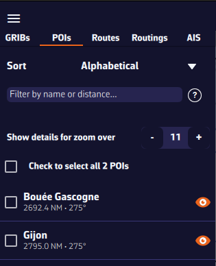 The term “waypoint” doesn’t exist in NavimetriX. Instead, we use POI (Point Of Interest), a more generic term that can include many elements (targets, anchorages, beacons, race marks, etc.).