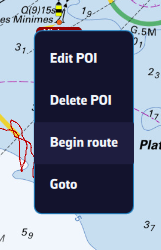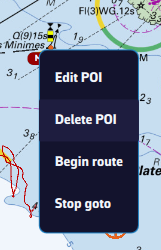 Once the POI is selected, a dashed black line is drawn between your boat and the POI, showing the direct route.