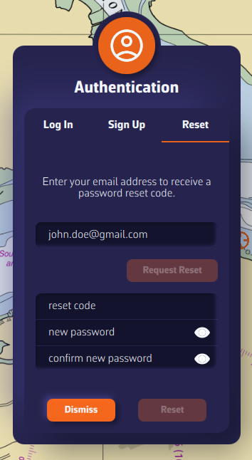 • Enter the reset code and your new password