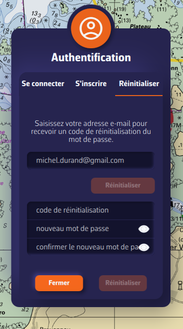 - Entrer l’adresse mail du compte NavimetriX et presser Réinitialiser